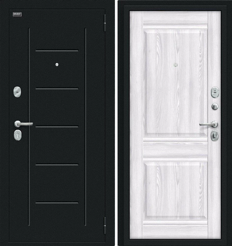 Надежная входная Дверь Браво Некст Kale Букле черное/Riviera Ice премиум класса по цене 35 177 руб. Большая толщина стали защитит от проникновения в ваш дом, квартиру или коттедж. Используется очень качественная фурнитура: замки, цилиндры, ручки, защелки. Покрытие и отделка двери изготовлено под внимательным контролем производителя. Дверь имеет долгий срок службы и гарантию.