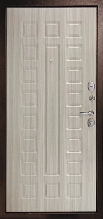Надежная входная Дверь Рубикон 1 Медь Сандал белый премиум класса по цене 32 327 руб. Большая толщина стали защитит от проникновения в ваш дом, квартиру или коттедж. Используется очень качественная фурнитура: замки, цилиндры, ручки, защелки. Покрытие и отделка двери изготовлено под внимательным контролем производителя. Дверь имеет долгий срок службы и гарантию.