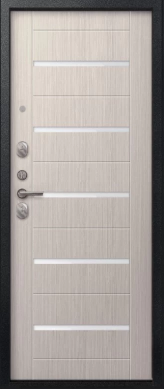 Надежная входная Дверь V-05 Черный муар - Лиственница светлая премиум класса по цене 41 507 руб. Большая толщина стали защитит от проникновения в ваш дом, квартиру или коттедж. Используется очень качественная фурнитура: замки, цилиндры, ручки, защелки. Покрытие и отделка двери изготовлено под внимательным контролем производителя. Дверь имеет долгий срок службы и гарантию.